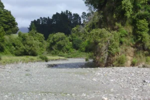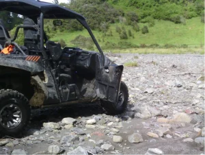 We surveyed 1.6 km of river bed using the latest drone technology and making use of the farmer’s latest off-road vehicle (below). The recent floods from cyclone Gabrielle resulted in a water level well above the vehicle height and covering the river bed as far as the eye can see.